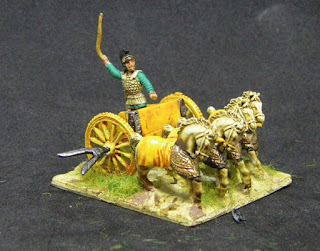 I'm not even sure how I ended up with these 4 (FOUR???!!) Essex Scythed Chariots - it's a figure/model that many people will own and recognise, and I have had these sat around undercoated yet unpainted for years as I have a couple of more robust chariots from an unknown manufacturer that I use for Scythed Chariots in my Hellenistic armies anyway.