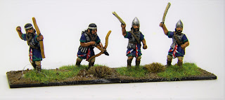 The Mediocre Bow are cheap and always sat between the 2 Spearmen in each command, keeping any enemy mounted honest with the whole mini block acting as flank guards for each set of Chariots, and doing a bit of long range shooting too in the meantime.